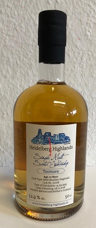 Aroma: Von Beginn an sehr fruchtig. Es dominieren Mandarinen, Mirabellen und Äpfel. Ein Hauch einer Kräuternote Oregano ist ebenfalls wahrnehmbar. Um so länger der Whisky Luft bekommt um so mehr entwickelt sich ein äußerst intensiver Geruch eines reifen roten Weinbergpfirsichs.